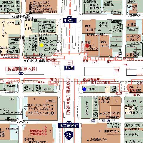 地下鉄御堂筋線と長堀鶴見緑地線「心斎橋駅」、四つ橋線の「四ツ橋駅」、