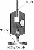 H形ガスケット構法は,金属枠などに,H形のガスケットを用いてガラスをとめる構法です.止水・排水性に劣ります.