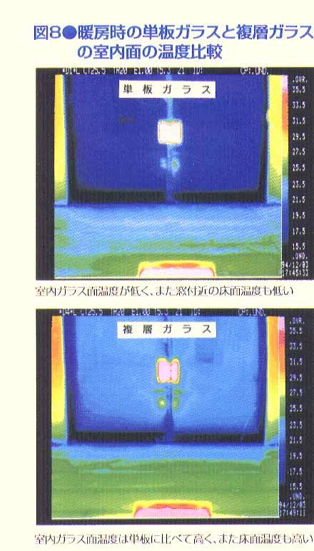 図8●暖房時の単板ガラスと複層ガラスの室内面の温度比較