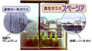 | 3 | スペーシアに交換してもサッシ部分の結露は軽減しません 硝子面の結露は100%解消出来る保証は有りませんが、 結露軽減効果にはほとんどの方が満足されています。 (今の所、スタンダードタイプで施工した物件では、 クレームになるほどの結露は発生していません。) |