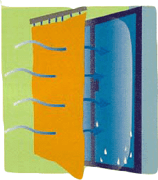 力一テンや障子を閉めると結露が ひどくなるのは、どうして? カーテンや障子1枚でも断熱効果があるため、暖かい 空気が遮断され、窓ガラスが冷やされてしまいます。 そこへ、湿った空気がカーテンや障子の隙間から侵 入して結露が発生するのです。薄いカーテンより厚い カーテン、1枝よりも2枚の方が結露しやすくなります。